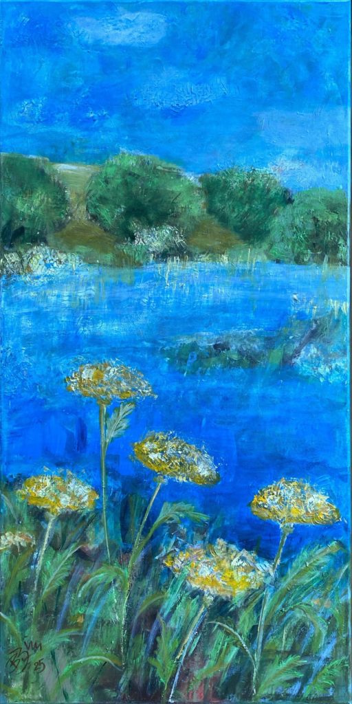 Einmal interessiert mich das Licht im Wechsel von Strukturen oder zusammengezogenen Flächen in der Landschaftsmalerei, mal das intuitive Darstellen eines Gemütszustandes in Form von Köpfen, mal möchte ich nur der Phantasie und der der Linienführung freien Lauf lassen.